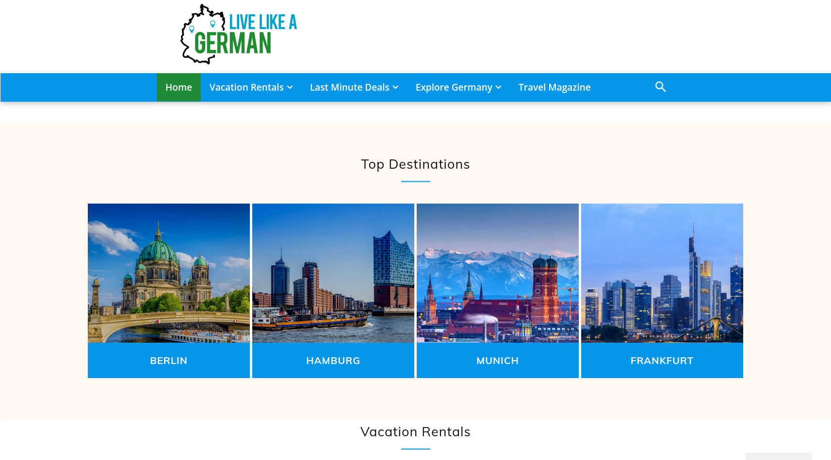 LiveLike a German is a vacation rental website that offers accommodations in Germany, Austria, and Switzerland for tourists. We provide personalized recommendations, unmatched customer service, and a wide range of options to cater to all budgets and preferences.